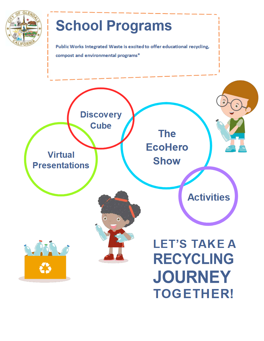Educators play a vital role in helping students build lifelong recycling and sustainability habits. The City of Glendale supports teachers with programs, tools, and classroom-ready materials that make environmental learning fun and engaging. Explore the resources below to bring recycling and composting education into your classroom.